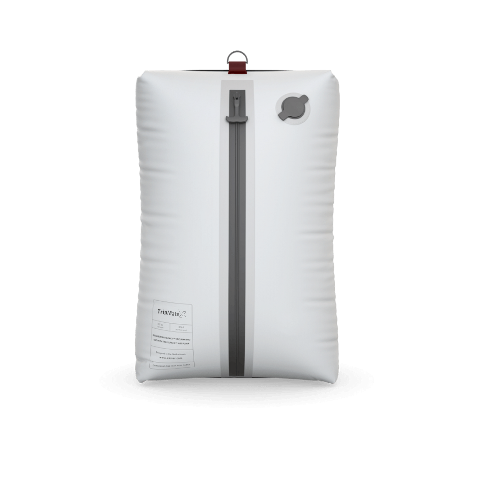 The modular TripMateX™ Vacuum Bags fit in all TripMateX bags and any carry-on or suitcase. It compresses 15+ clothing items so you can pack more without any hassle.